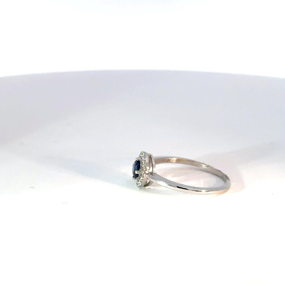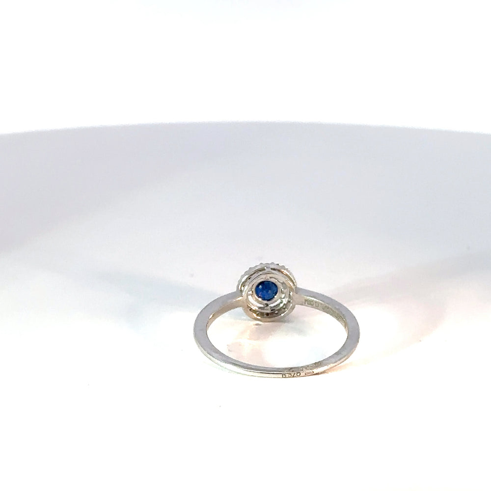 Este anillo de oro blanco 18k con zafiro azul natural y diamantes de alta calidad es único. Su diseño de múltiples piedras lo convierte en la joya perfecta para añadir un toque de sofisticación a cualquier atuendo.