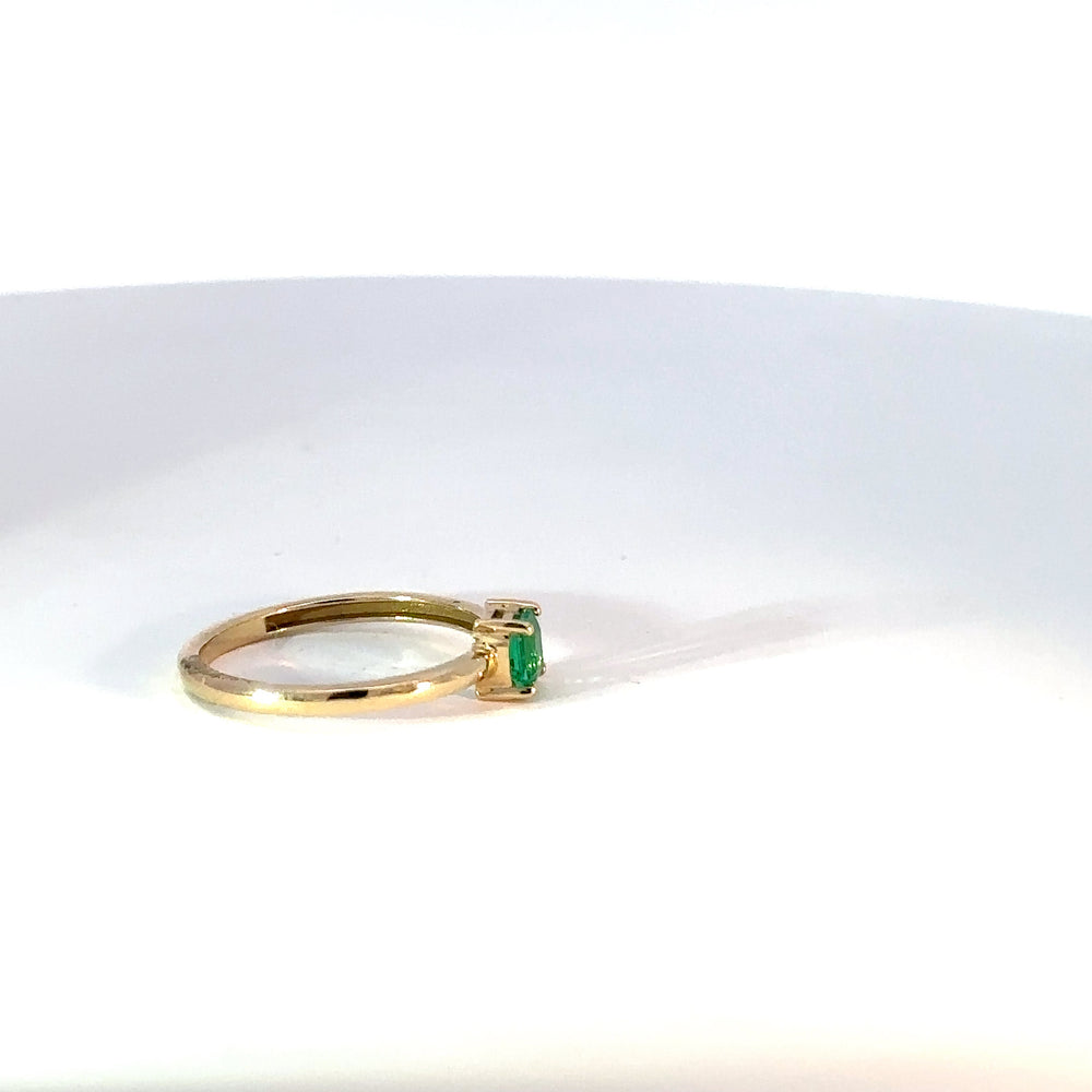 Descubre la elegancia atemporal con este anillo solitario, elaborado en oro amarillo. Destaca un vibrante esmeralda de corte cuadrado de 0.29ct, cuyo brillo verde intenso captura la luz con cada movimiento. Ideal para quien busca una joya clásica con un toque de color distintivo y sofisticado.