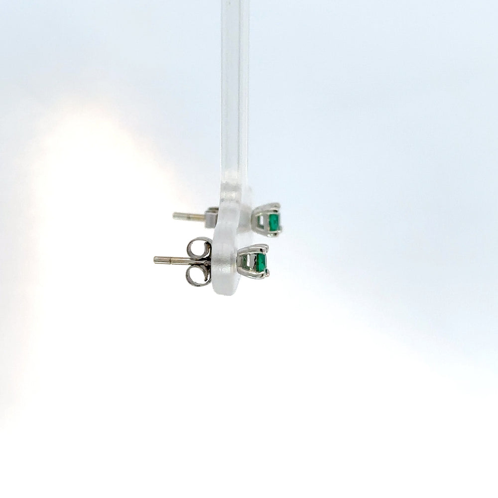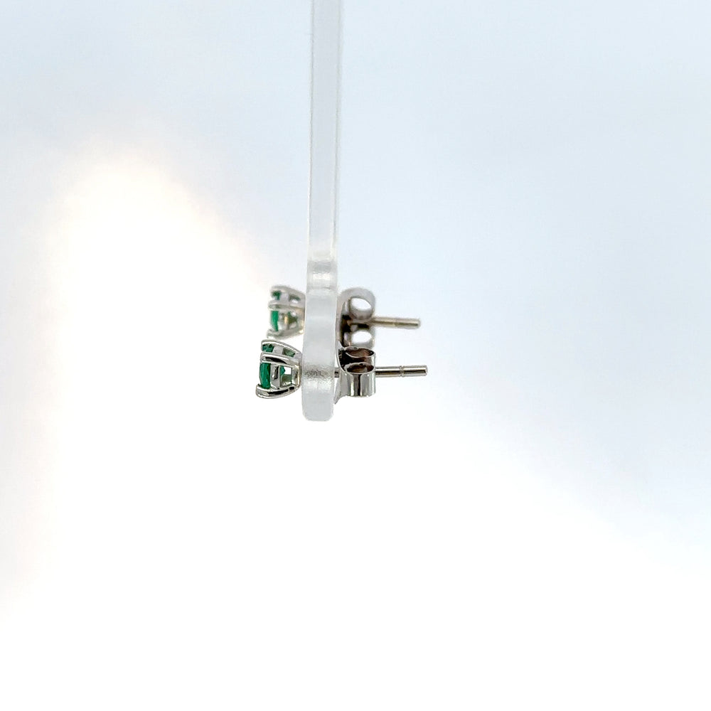 Discretos y elegantes aretes topos en esmeralda, elaborados en oro blanco. Cada uno exhibe una vibrante esmeralda de talla redonda, un detalle que captura la luz y añade un toque de sofisticación sutil a cualquier atuendo. Perfectos para un look diario refinado o como un regalo especial.