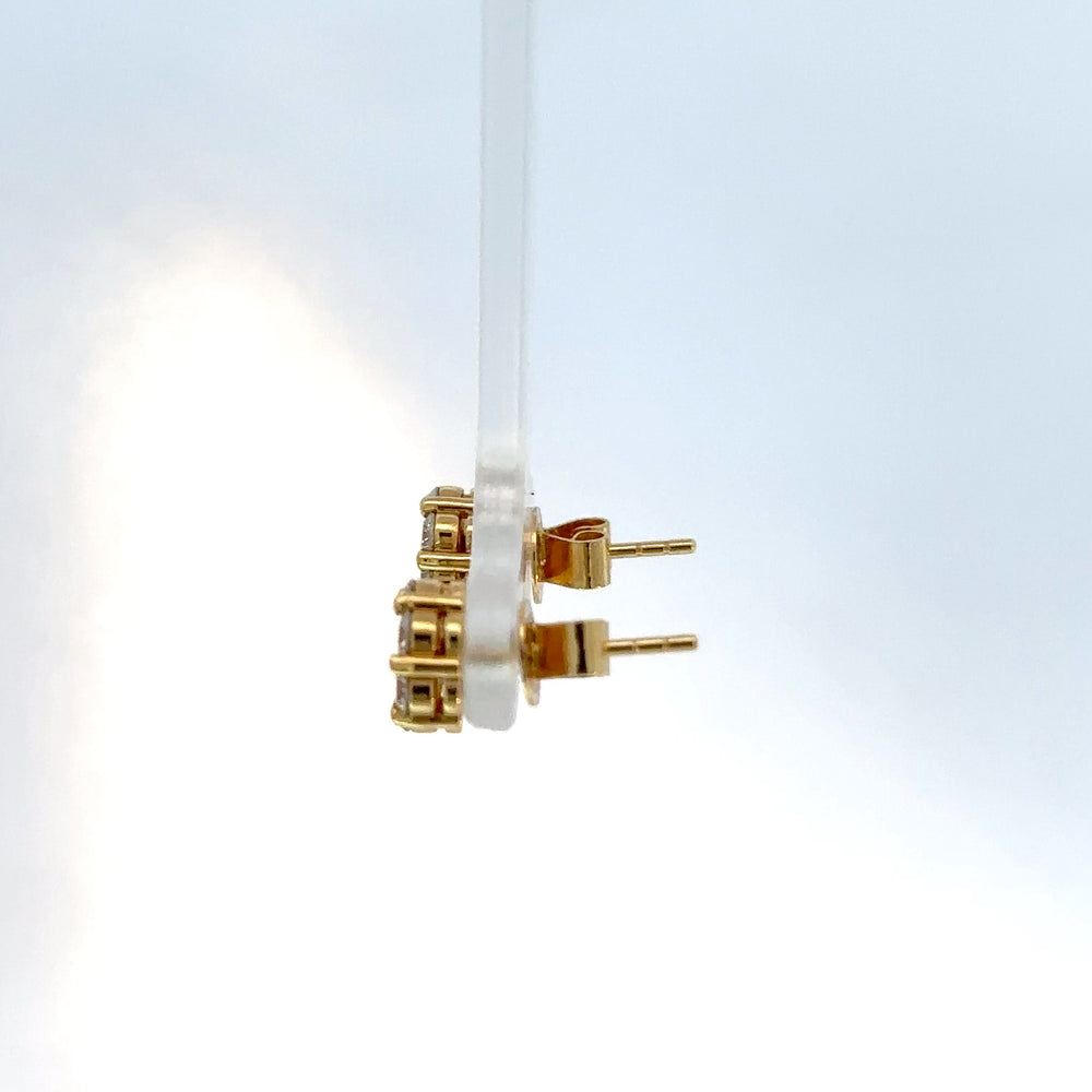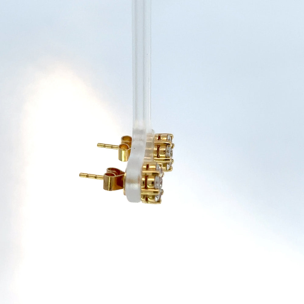 Eleva tu estilo con estos exquisitos aretes tipo ilusion, elaborados en oro amarillo. Cada pieza presenta un deslumbrante conjunto de diamantes redondos de talla brillante 0.82ct, meticulosamente engastados para maximizar su brillo y crear un diseño floral encantador y sofisticado. Un accesorio perfecto para añadir un toque de lujo discreto a cualquier atuendo.