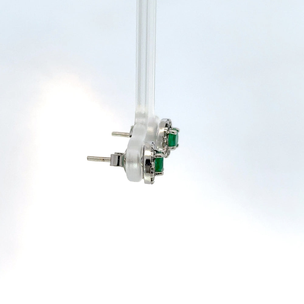 Luce la elegancia clásica con estos exquisitos aretes tipo halo. Elaborados en oro blanco, destacan por sus vibrantes esmeraldas de talla brillante redonda 0.47ct y rodeado de diamantes naturales de alta calidad 0.22ct . Una joya atemporal, perfecta para realzar cualquier atuendo con un toque de sofisticación natural.