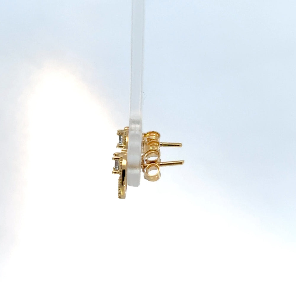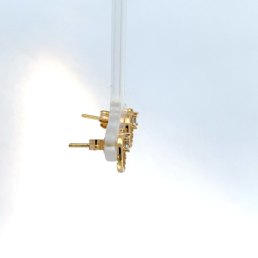 Eleva tu estilo con estos exquisitos aretes tipo argolla, elaborados en oro amarillo brillante. Cada pieza presenta un deslumbrante circones de talla brillante redonda, cuidadosamente engastado para maximizar su brillo y claridad. Un accesorio sofisticado, perfecto para añadir un toque de elegancia a cualquier atuendo.