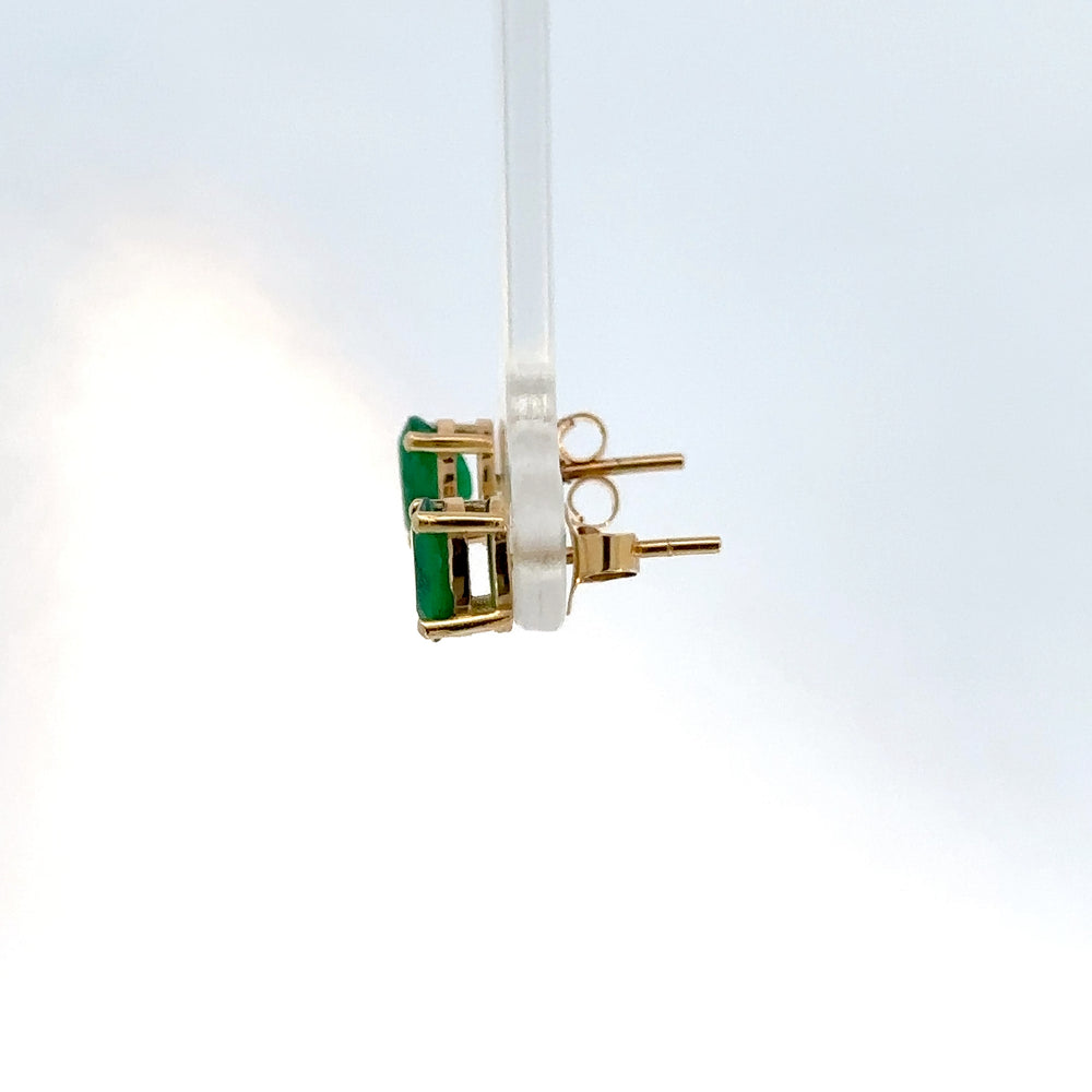 Descubre la elegancia atemporal con estos delicados aretes de oro amarillo. Cada pieza exhibe una esmeralda ovalada colombiana de 1.30ct , cuyo vibrante color verde captura la esencia de la naturaleza. Ideales para añadir un toque de sofisticación sutil a cualquier atuendo, estos aretes son la joya perfecta para realzar tu belleza natural.