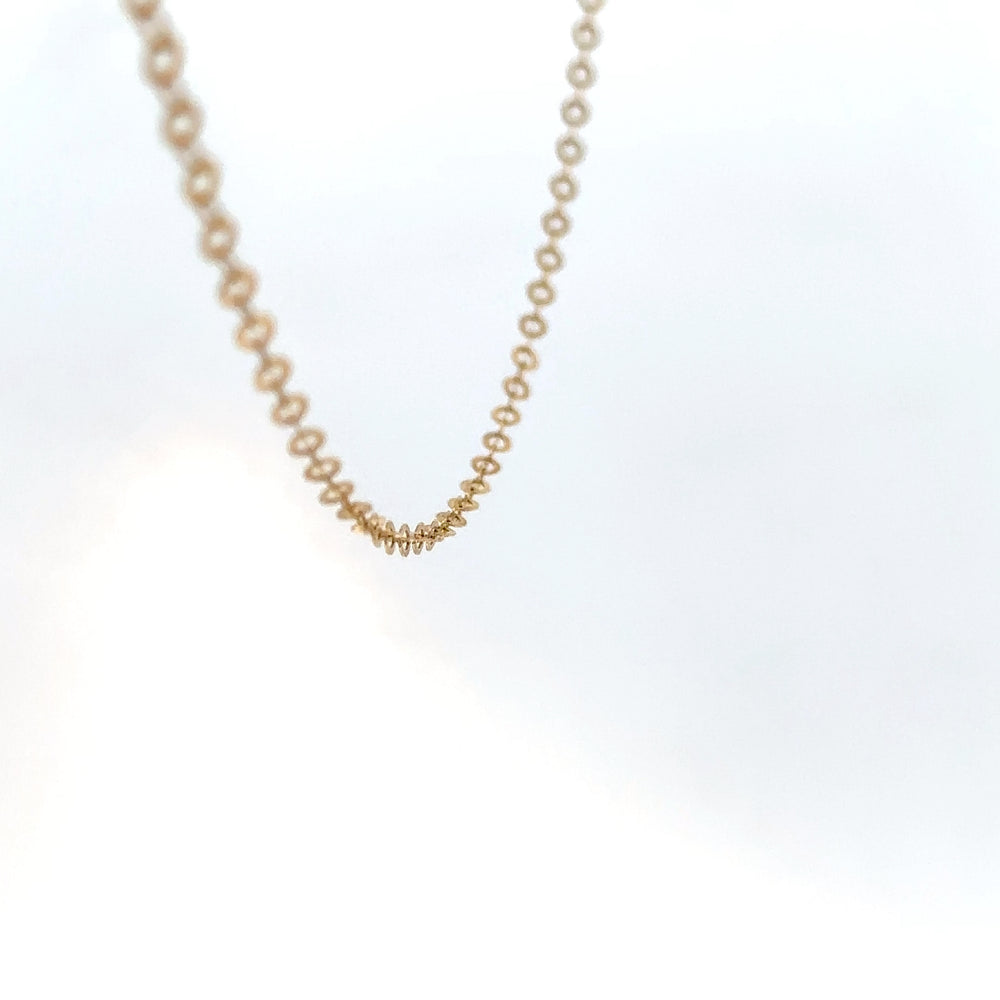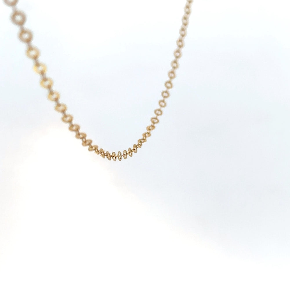 Realza tu estilo con esta delicada cadena de oro amarillo. Perfecta para llevar sola o con tu colgante favorito. Su diseño clásico y elegante la convierte en un accesorio imprescindible en tu colección de joyería. Ideal para cualquier ocasión, desde eventos especiales hasta el día a día.