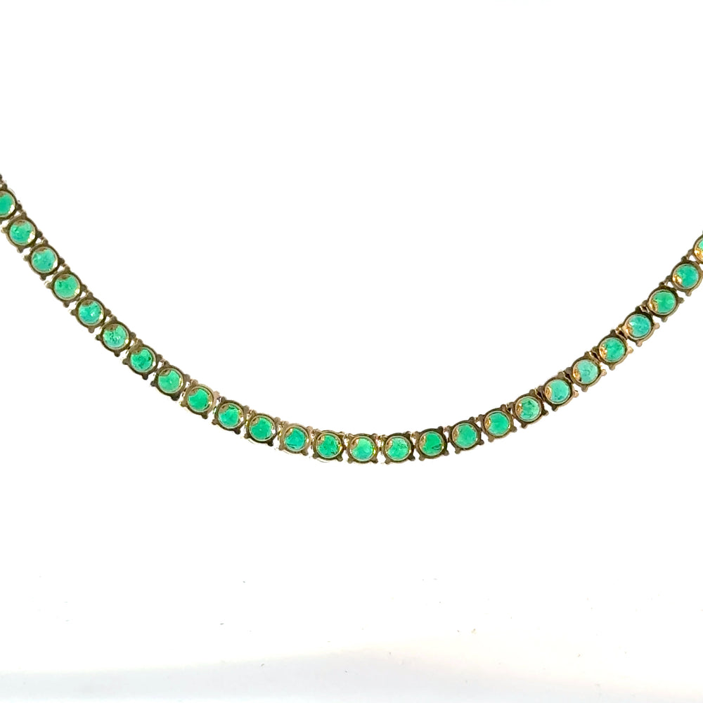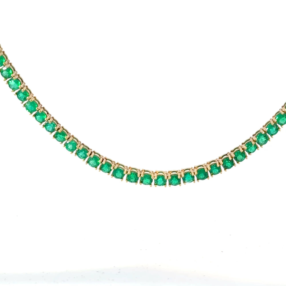 Cadena tennis en oro amarillo 18k con esmeraldas naturales 14.5ct de alta calidad. Cada esmeralda irradia un color verde intenso, aportando un toque de lujo y sofisticación. Este collar es una joya atemporal perfecta para realzar cualquier atuendo.