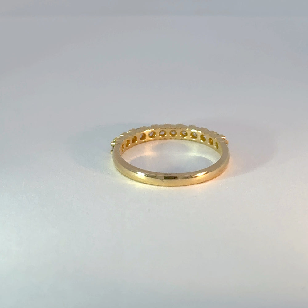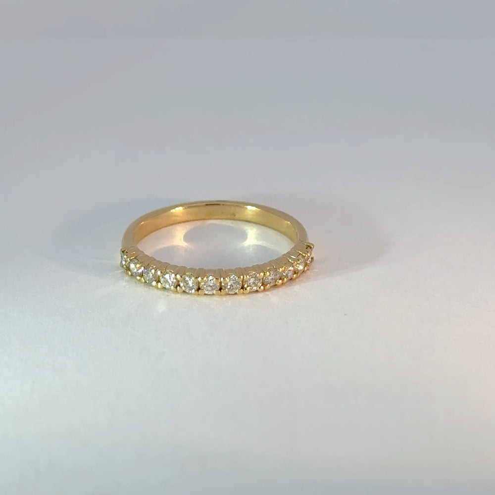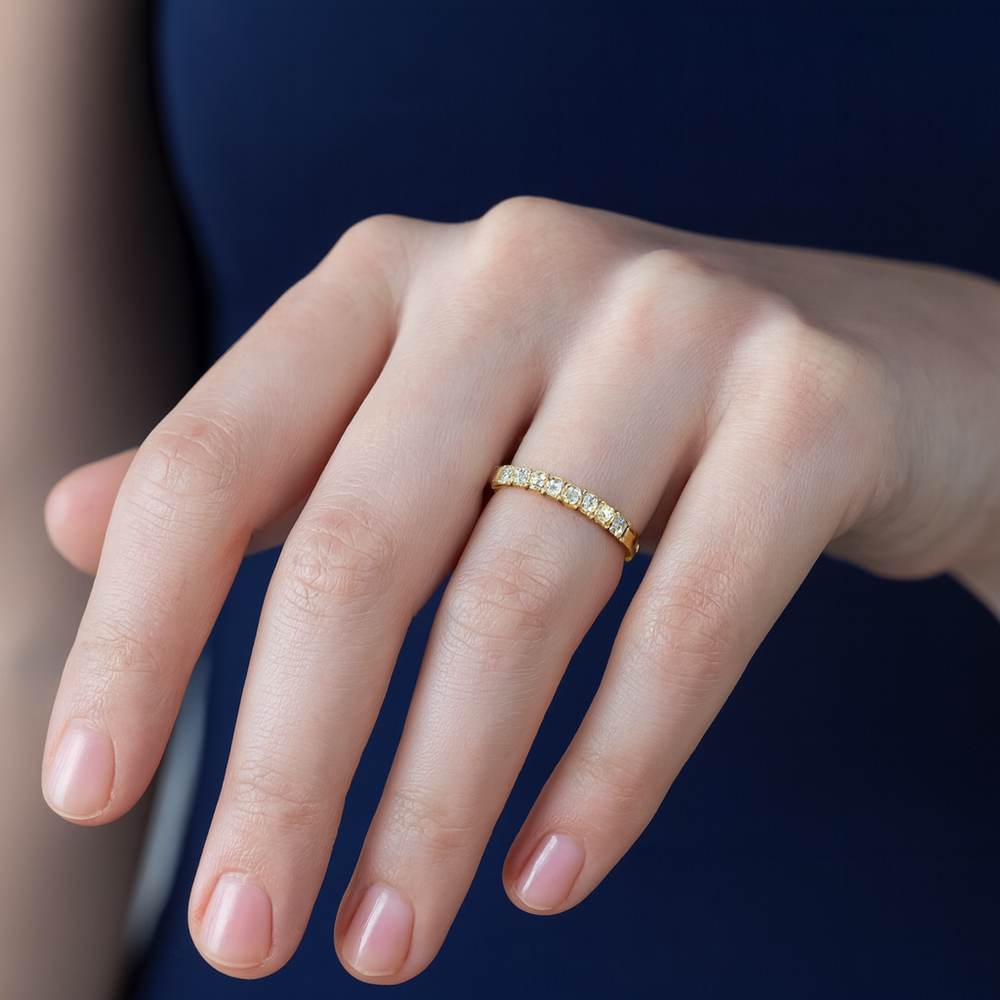 Celebre la eternidad de su amor con este deslumbrante anillo de eternidad. Elaborado en oro amarillo brillante, este exquisito anillo presenta diamantes redondos de talla brillante de alta calidad F-VS 0.36ct que capturan la luz desde todos los ángulos. Un símbolo de compromiso y elegancia perdurables, perfecto para cualquier ocasión especial.