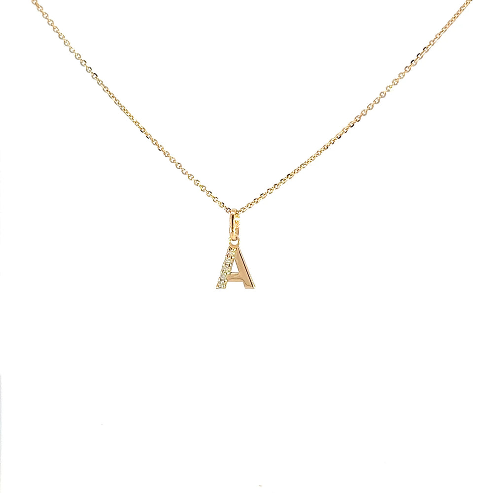 Este elegante collar presenta una delicada cadena dorada con un colgante en forma de letra 'A', adornado con brillantes. Perfecto para personalizar tu estilo, este accesorio es ideal para cualquier ocasión, ya sea un evento formal o un día casual.
