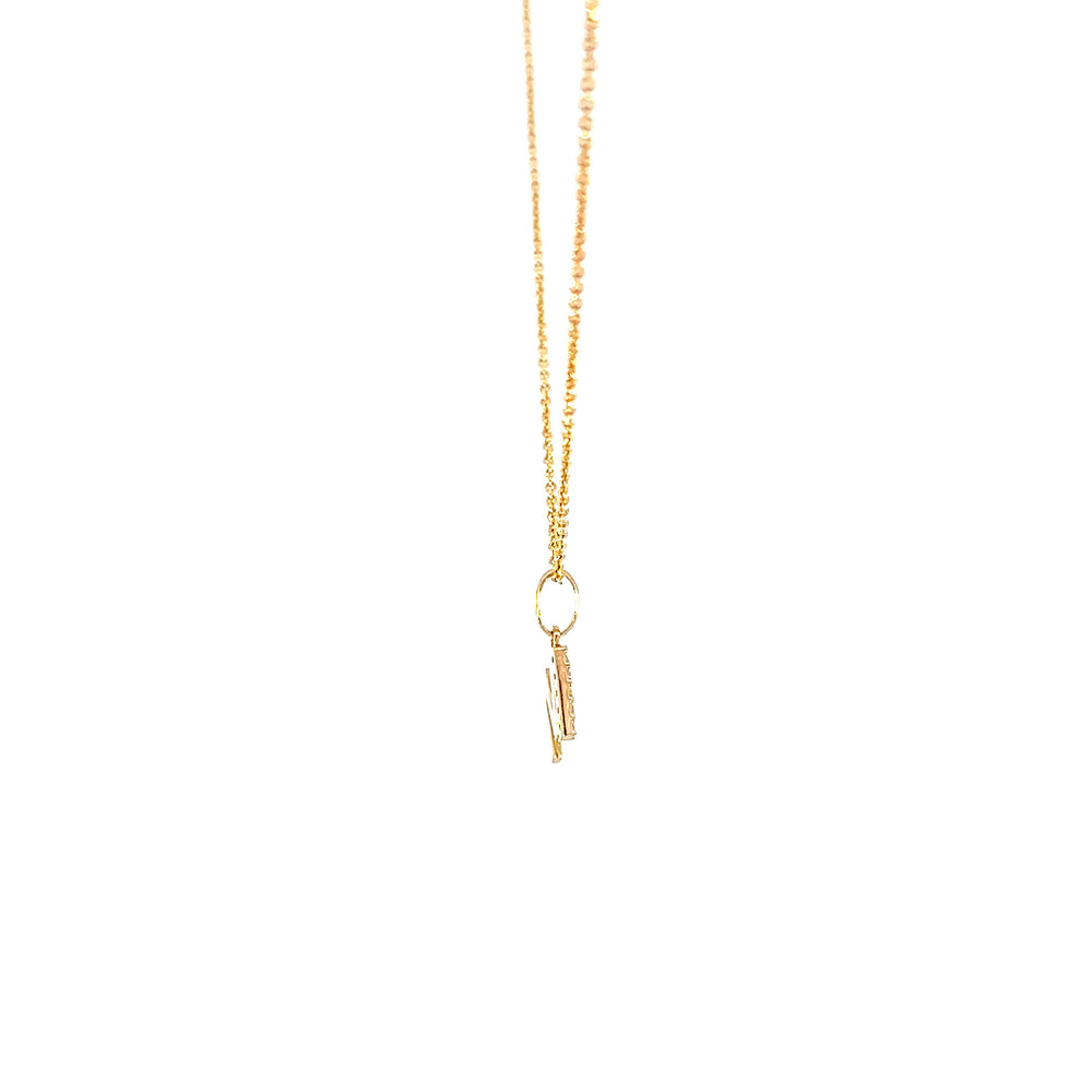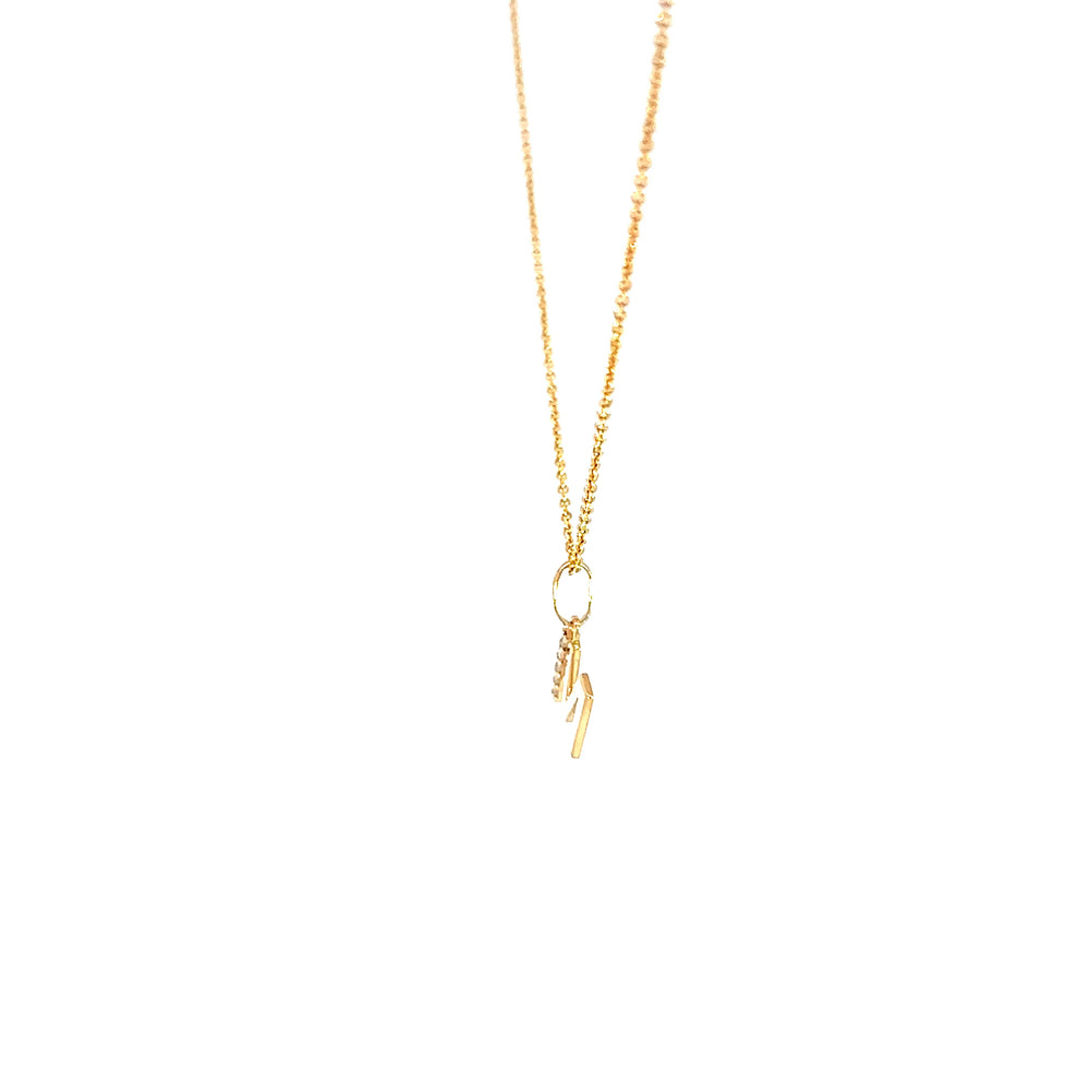 Este elegante collar presenta una delicada cadena dorada con un colgante en forma de letra 'M'. Perfecto para personalizar tu estilo, este accesorio es ideal para cualquier ocasión, ya sea un evento formal o un día casual.