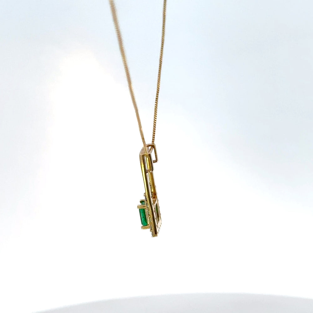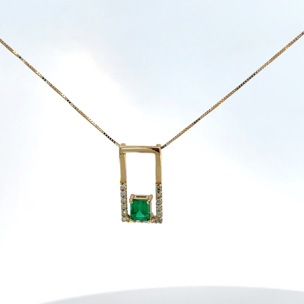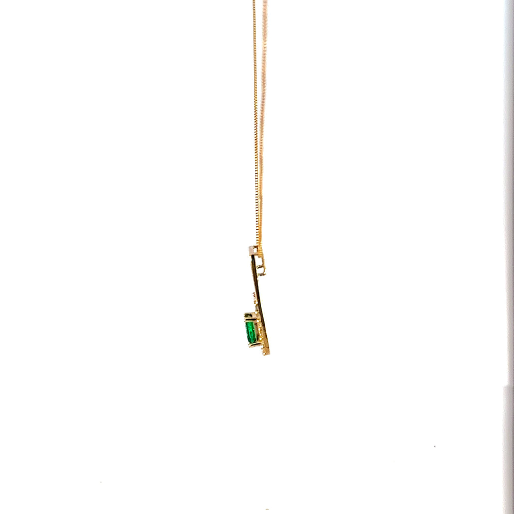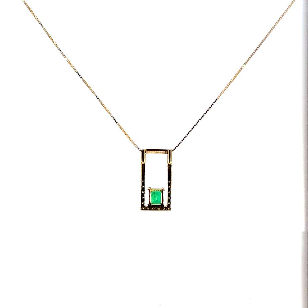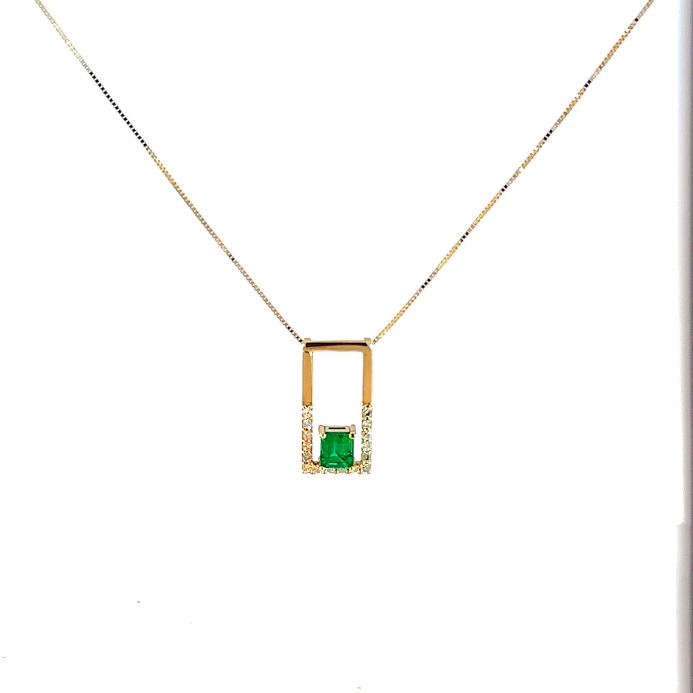 Este collar deslumbrante presenta un diseño moderno con una hermosa esmeralda en el centro de 0.49ct y unos diamantes naturales redondos de decoración. La combinación de oro y la piedra preciosa crea una pieza única que realza cualquier atuendo. Ideal para ocasiones especiales o para un uso diario elegante.