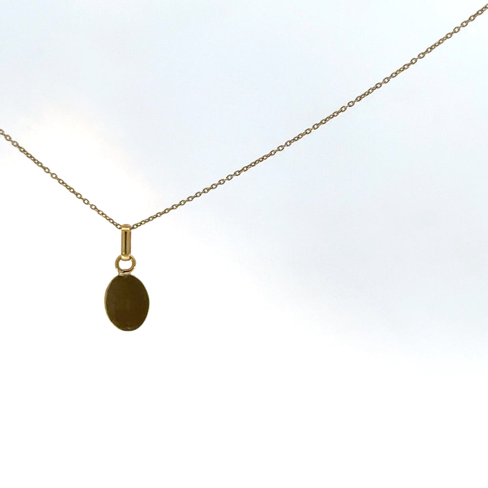 Dije elaborado en oro amarillo, que exhibe un diseño de medalla religiosa. Ideal para llevar un símbolo de fe con elegancia y discreción. Esta joya atemporal resalta por su delicadeza y significado espiritual, convirtiéndose en un accesorio perfecto para el día a día o para ocasiones especiales.