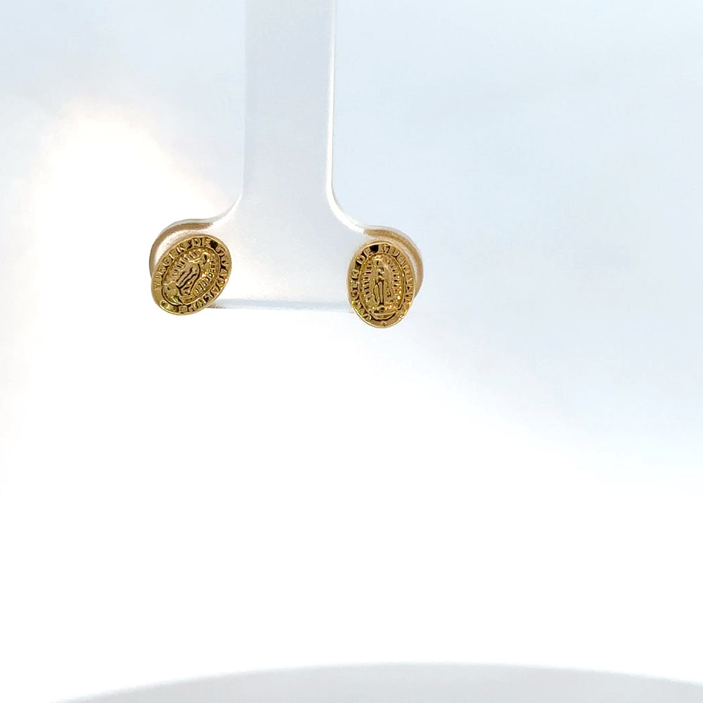 Luce un símbolo de fe con estos delicados pendientes de oro amarillo. Cada pieza presenta un diseño circular detallado con la imagen grabada de la Virgen María, rodeada de una inscripción. Su brillo discreto y significado espiritual los hacen perfectos para llevar a diario o como un regalo especial y lleno de devoción.