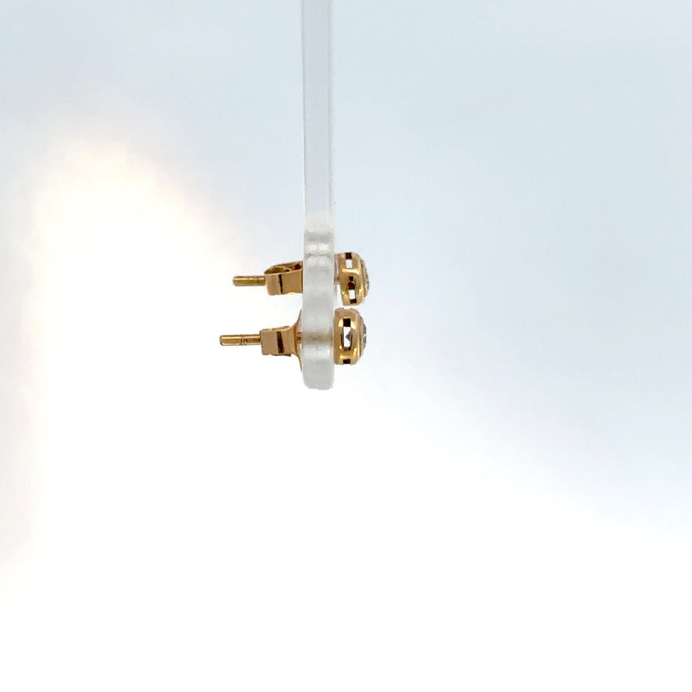 Descubre la elegancia sutil con estos encantadores aretes tipo bisel, elaborados en oro amarillo radiante. Cada pieza exhibe un diamante de corte brillante 0.12ct que captura la luz con una claridad deslumbrante. Ideales para añadir un toque de sofisticación a cualquier atuendo, estos aretes son una joya esencial para tu colección.