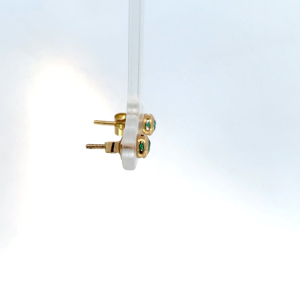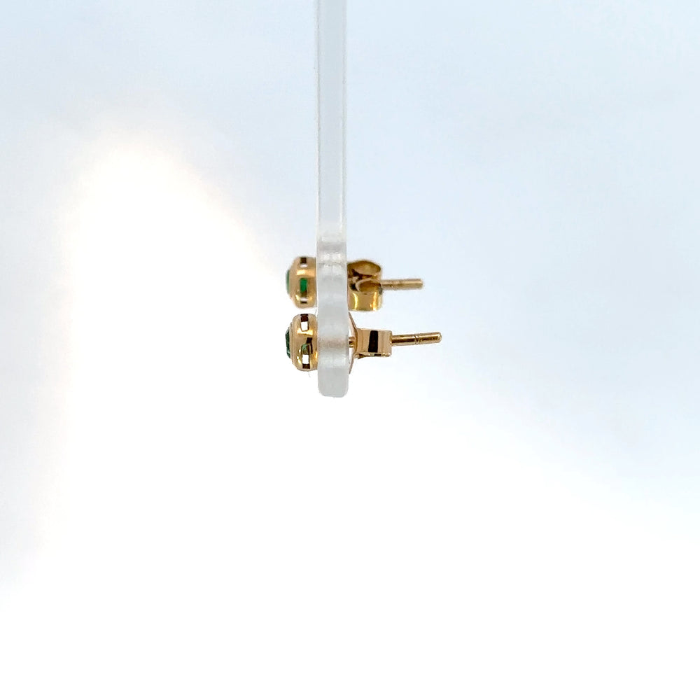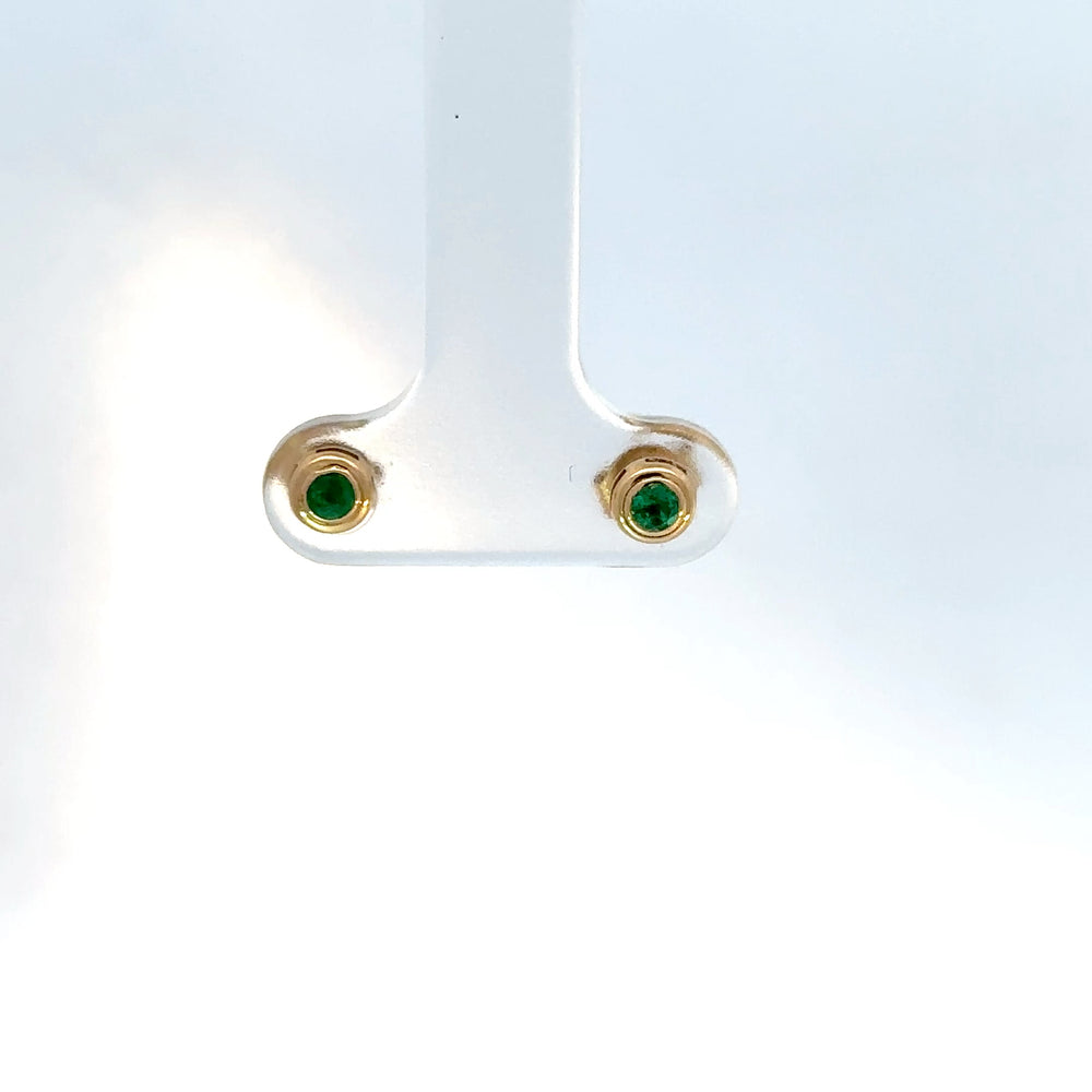 Delicados pendientes de oro rosado, un toque clásico y atemporal para cualquier ocasión. Estos elegantes aretes tipo bisel destacan por sus vibrantes esmeraldas de corte redondo 0.13ct, que capturan la luz con un brillo sutil y encantador. Un accesorio discreto pero lleno de sofisticación, perfecto para realzar tu belleza natural.