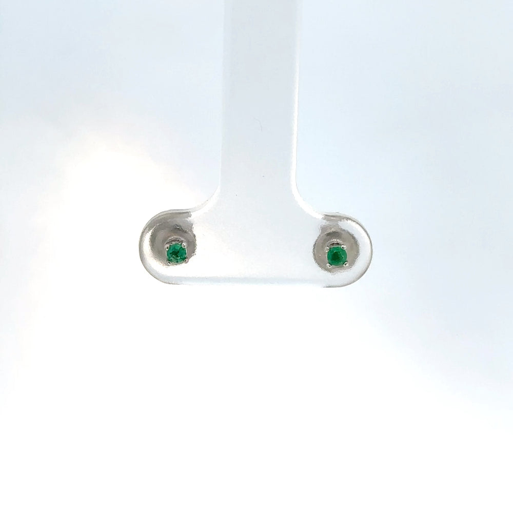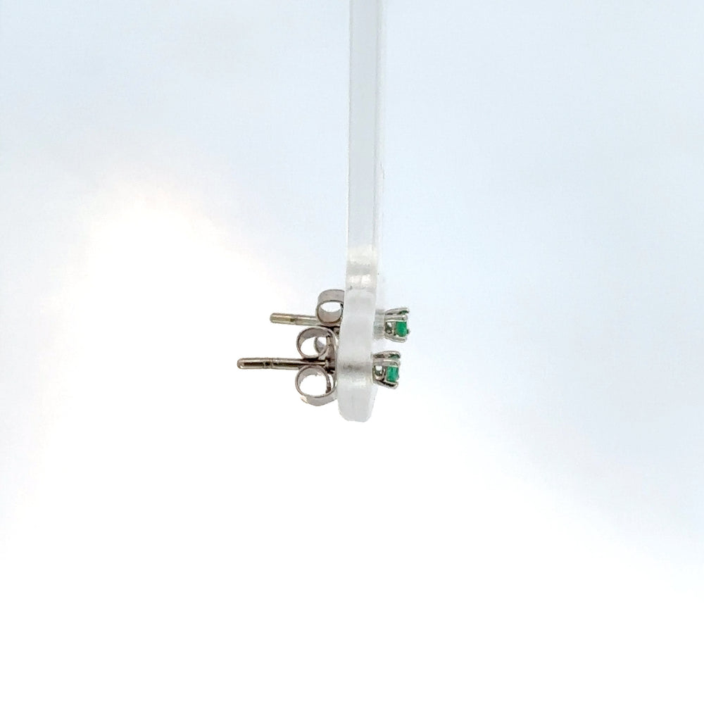 Delicados aretes tipo botón, elaborados en oro blanco que resalta su elegancia. Presentan esmeraldas de corte redondas 0.12ct, reconocidas por su intenso color verde y pureza excepcional. Estos aretes combinan sencillez y sofisticación, perfectos para añadir un toque de color y distinción a cualquier atuendo.